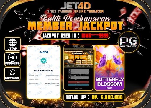 Jet4D: Penakluk Kemenangan Brutal Slot Butterfly Blossom Jackpot yang Tak Terhentikan Selamat Kepada Member Setia Atas Withdraw Rp. 5.000.000 Hari ini Gak pake ribet, proses withdraw langsung