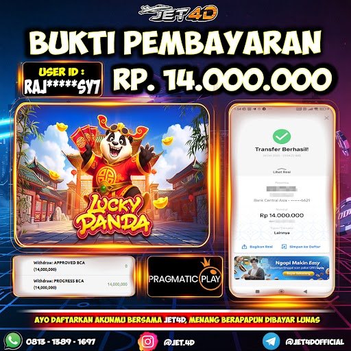 JET4D Lucky Panda Selamat Kepada Member Setia Atas Withdraw Rp 14.000.000 Hari ini. List member yang sebelumnya mendapatkan withdraw besar bisa cek Disini dan di LINK ini.pelanyanan nonstop dan profesional hanya ada di JET4D.