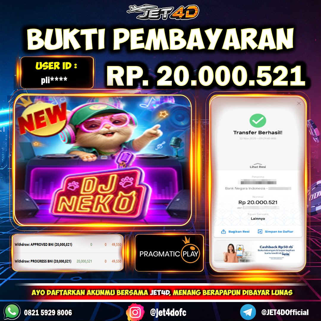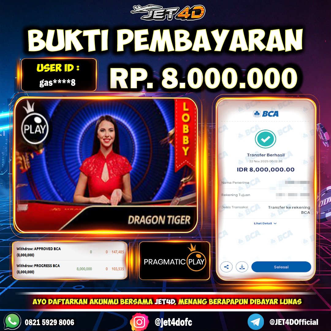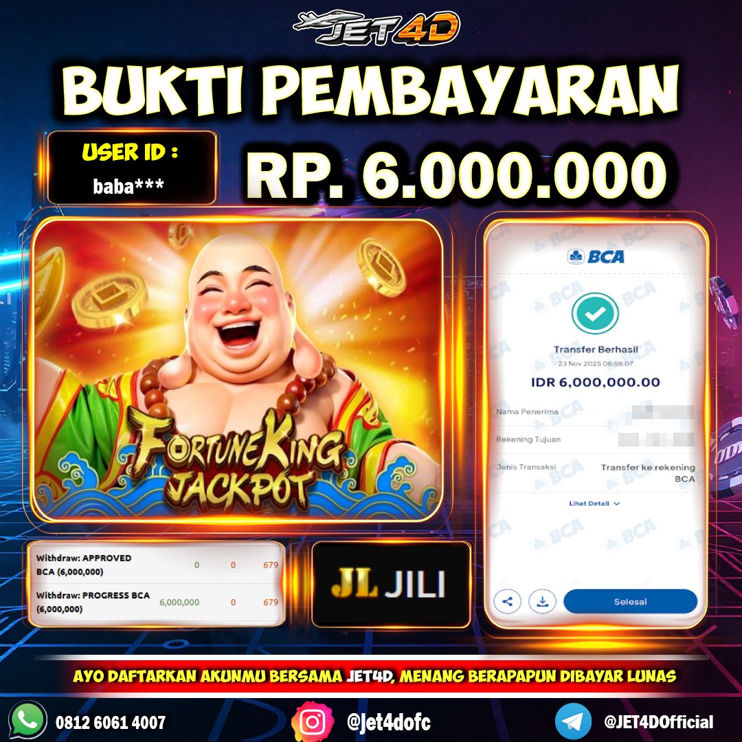 JET4D TEBAK CEPAT, MENANG CEPAT Selamat Kepada Member Setia Atas Withdraw Rp 8.000.000 Hari ini. List member yang sebelumnya mendapatkan withdraw besar bisa cek Disini dan di LINK ini.pelanyanan nonstop