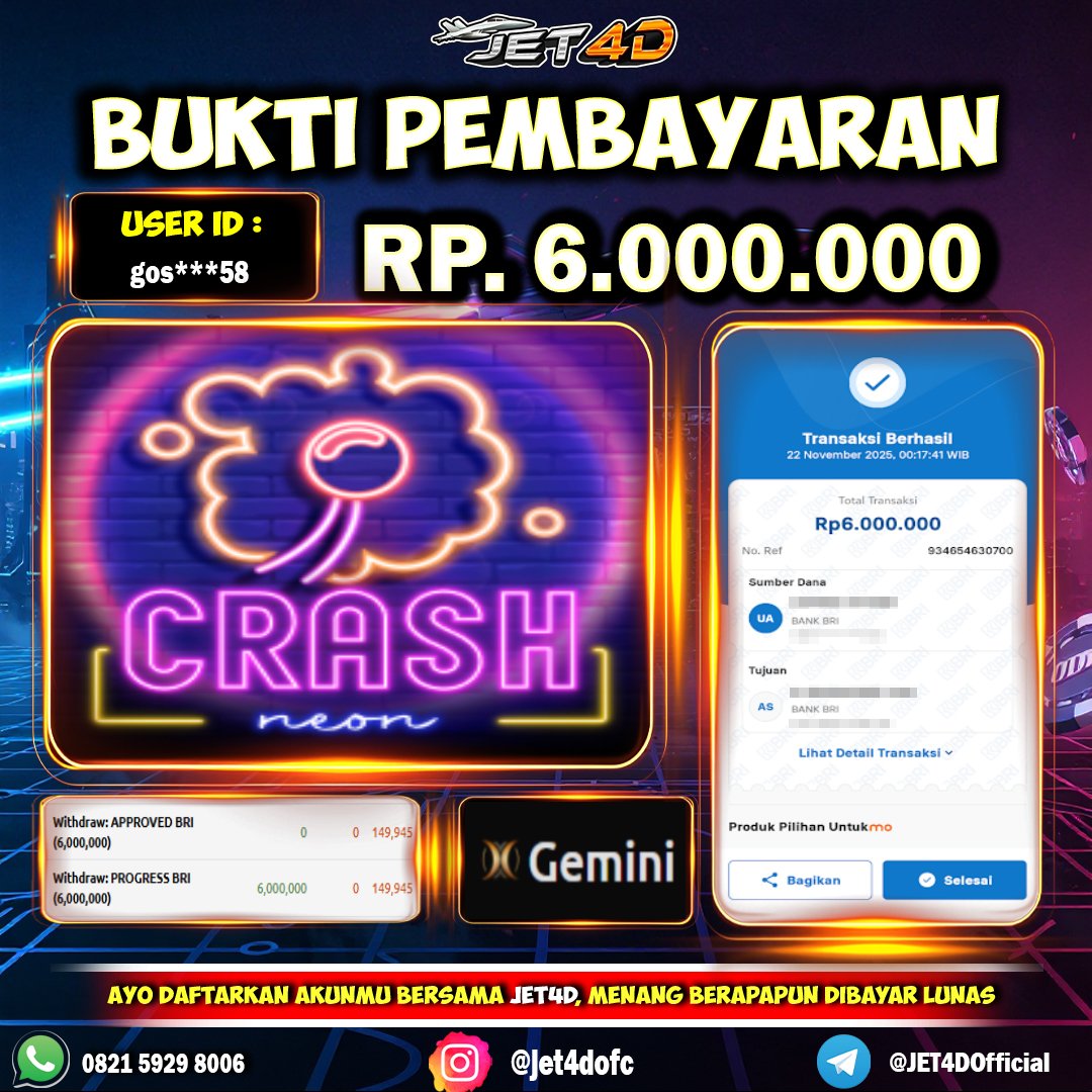 JET4D SEKALI TARIK, LANGSUNG CUAN Selamat Kepada Member Setia Atas Withdraw Rp 6.000.000 Hari ini. List member yang sebelumnya mendapatkan withdraw besar bisa cek Disini dan di LINK ini.pelanyanan nonstop