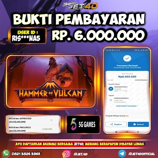 JET4D Hammer of Vulcan Selamat Kepada Member Setia Atas Withdraw Rp 6.000.000 Hari ini. List member yang sebelumnya mendapatkan withdraw besar bisa cek Disini dan di LINK ini.pelanyanan nonstop dan