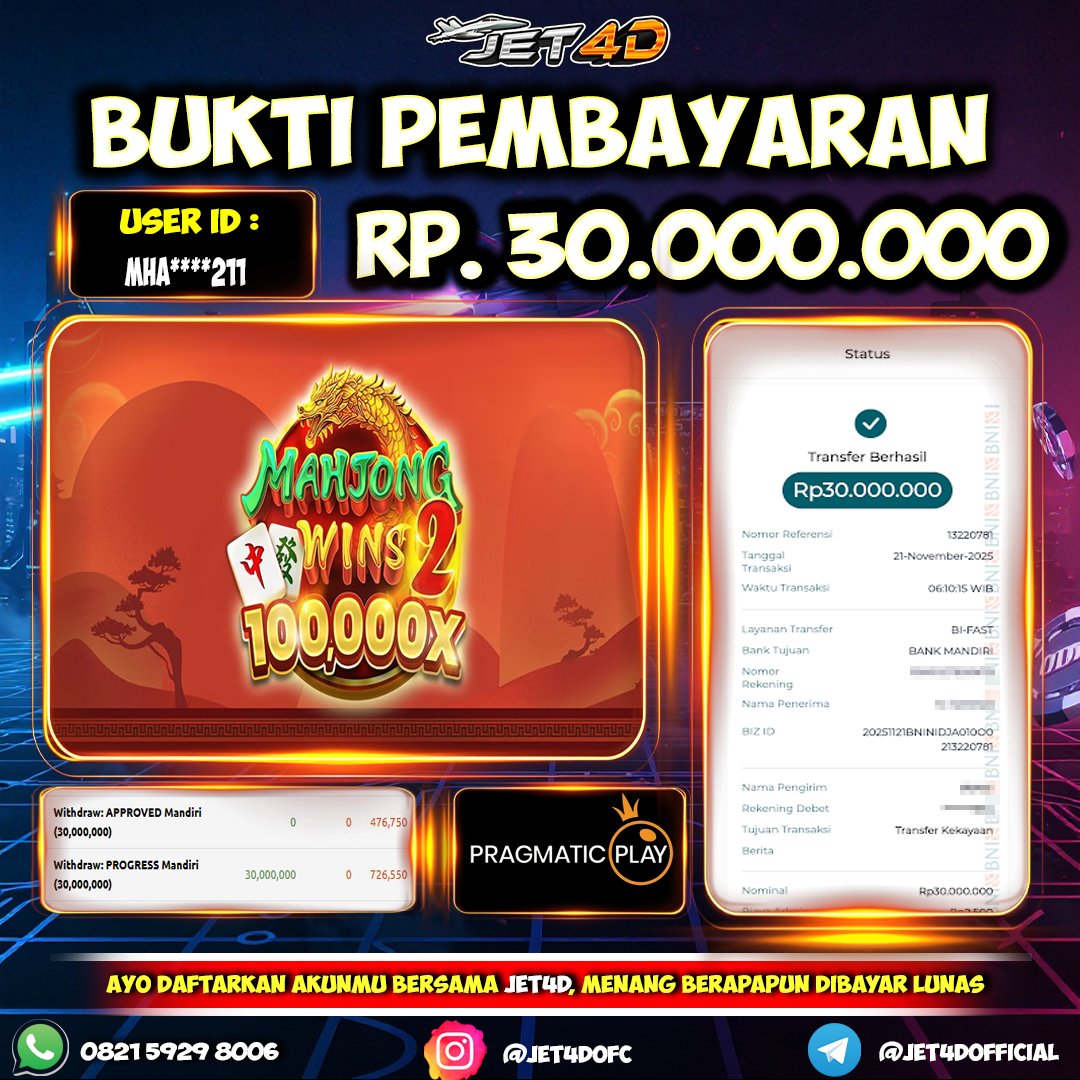 JET4D RAIH KEKAYAAN BERKILAU Selamat Kepada Member Setia Atas Withdraw Rp 6.800.000 Hari ini. List member yang sebelumnya mendapatkan withdraw besar bisa cek Disini dan di LINK ini.pelanyanan nonstop dan profesional