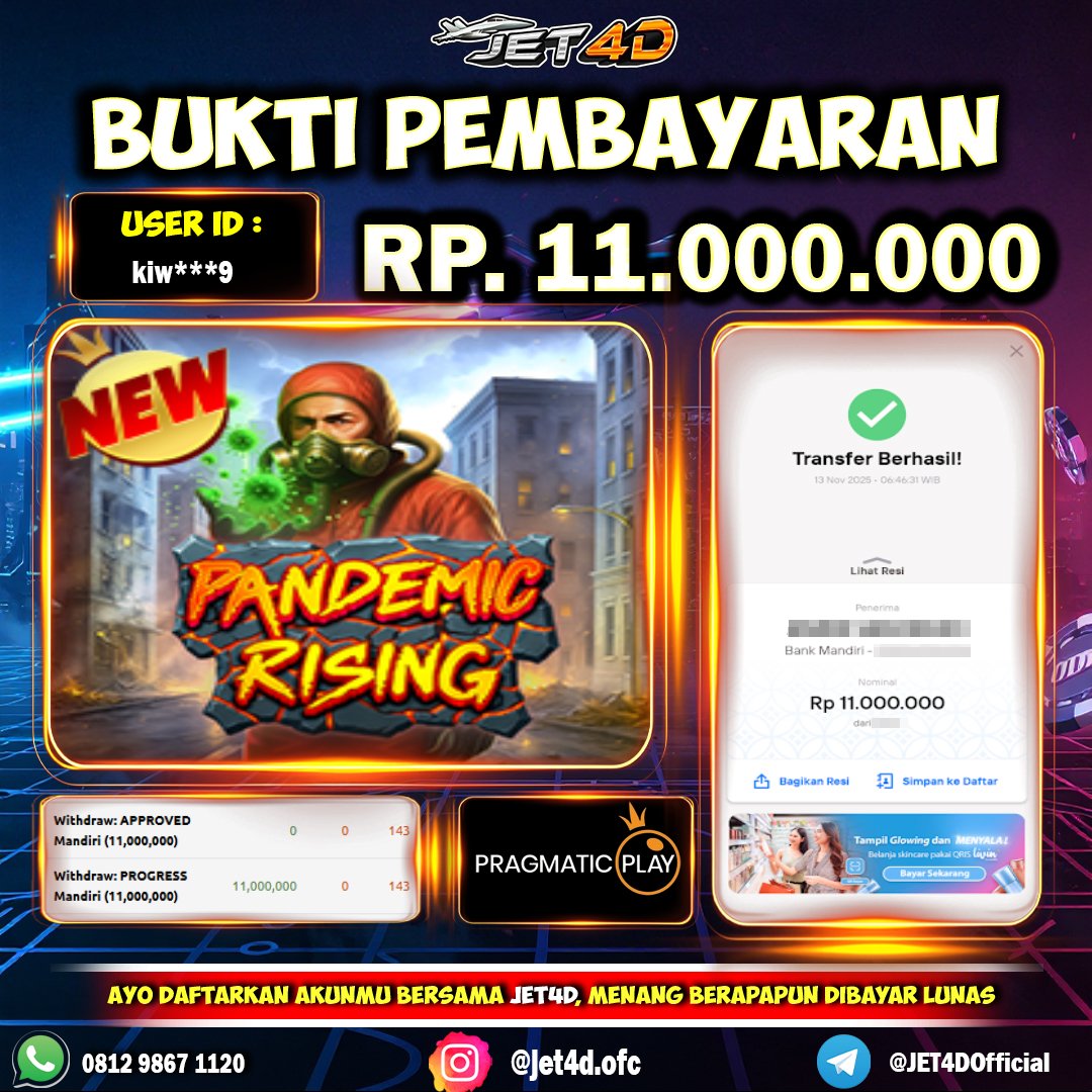 JET4D WEDE BERAPAPUN DIBAYAR LUNAS Selamat Kepada Member Setia Atas Withdraw Rp 11.000.000 Hari ini. List member yang sebelumnya mendapatkan withdraw besar bisa cek Disini dan di LINK ini.pelanyanan nonstop