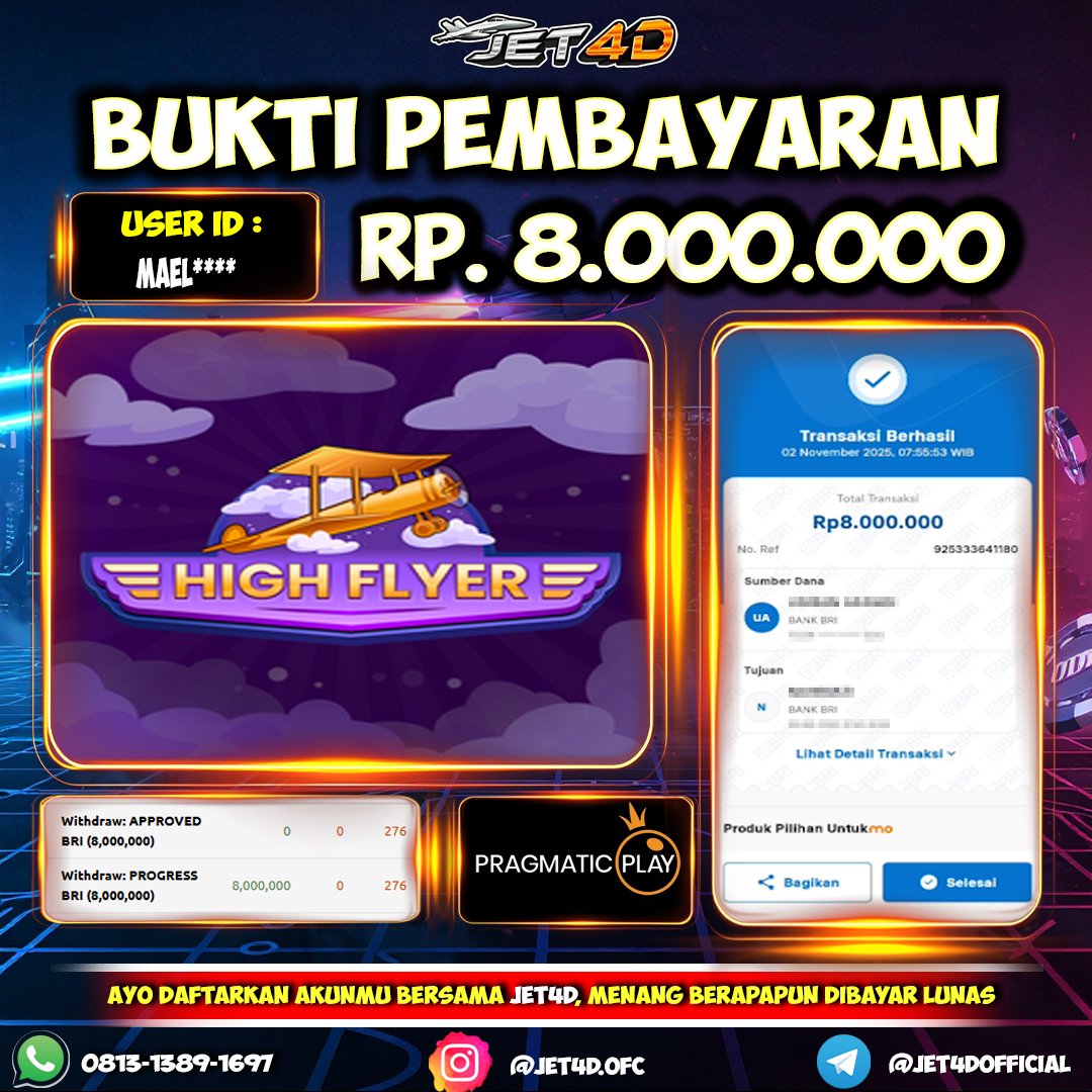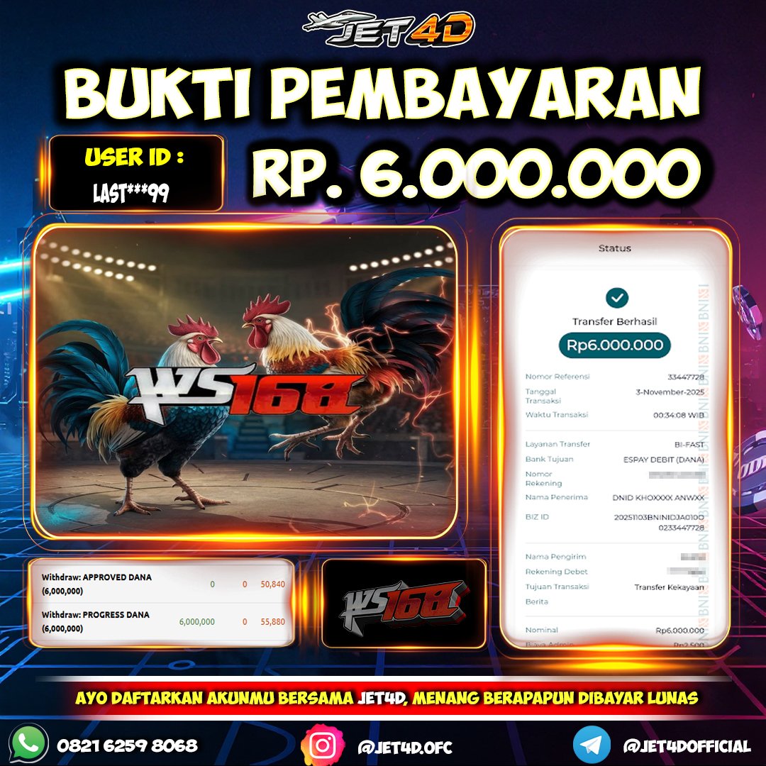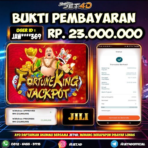 JET4D SENSASI MENANG SECEPAT JET Selamat Kepada Member Setia Atas Withdraw Rp 8.000.000 Hari ini. List member yang sebelumnya mendapatkan withdraw besar bisa cek Disini dan di LINK ini.pelanyanan nonstop