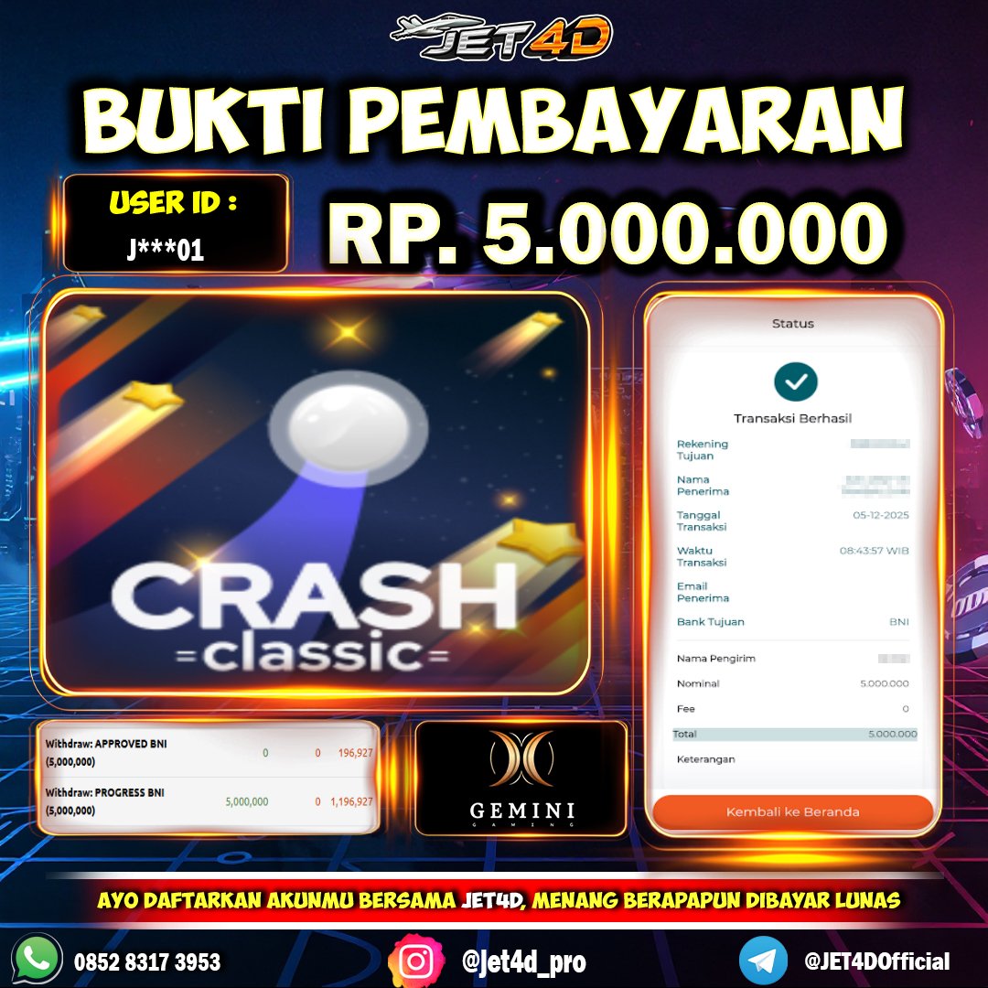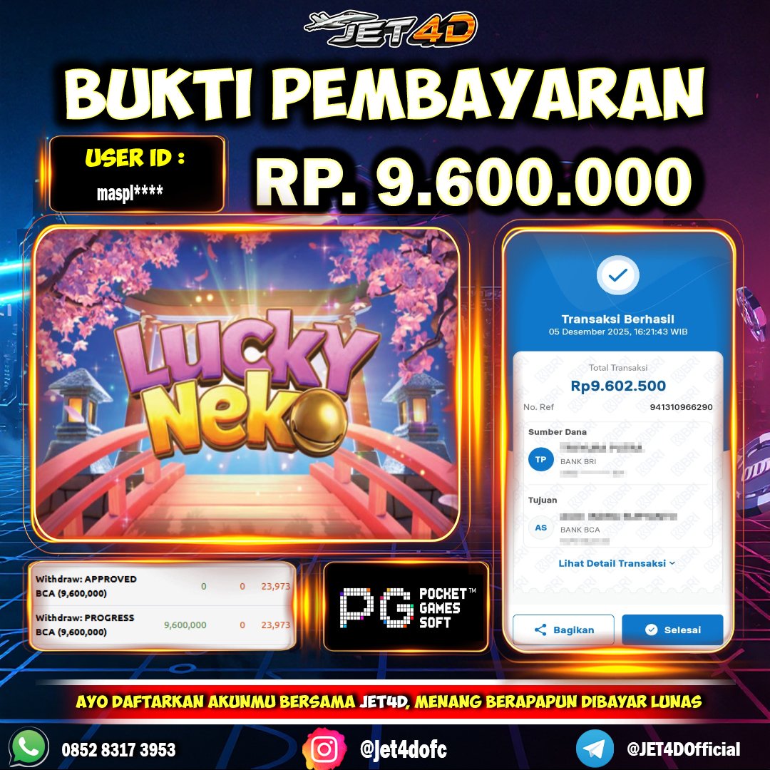 JET4D WEDE BERAPAPUN DIBAYAR LUNAS Selamat Kepada Member Setia Atas Withdraw Rp 9.600.000 Hari ini. List member yang sebelumnya mendapatkan withdraw besar bisa cek Disini dan di LINK ini.pelanyanan nonstop