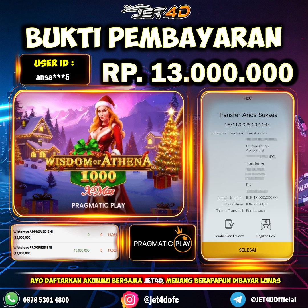 JET4D SEKALI SPIN AUTO WEDE Selamat Kepada Member Setia Atas Withdraw Rp 50.000.000 Hari ini. List member yang sebelumnya mendapatkan withdraw besar bisa cek Disini dan di LINK ini.pelanyanan nonstop