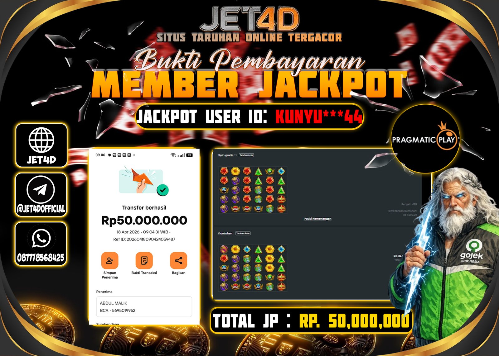Jet4d Depo Sudah Pasti Wede Selamat Kepada Member Setia Atas Withdraw Rp. 50,000,000 Hari ini