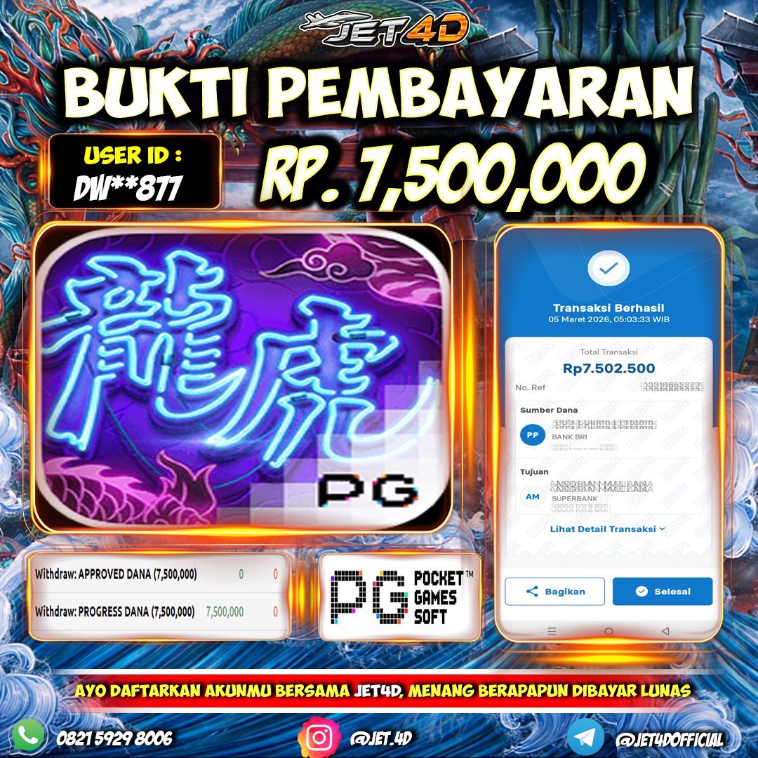 JET4D JACKPOT SLOT DRAGON TIGER LUCK Selamat Kepada Member Setia Atas Withdraw Rp. 7,500,000 Hari ini