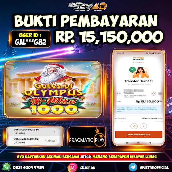 JET4D Gates of Olympus Xmas 1000 Selamat Kepada Member Setia Atas Withdraw Rp. 15.150.000 Hari ini List member yang sebelumnya mendapatkan withdraw besar bisa cek Disini dan di LINK ini.pelanyanan