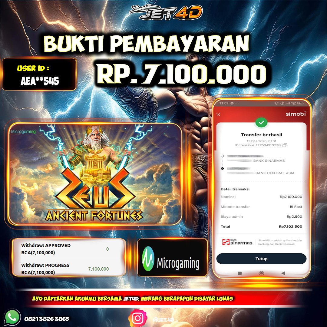 JET4D Ancient Fortunes: Zeus Selamat Kepada Member Setia Atas Withdraw Rp 7.100.000 Hari ini. JET4D Ancient Fortunes: Zeus adalah sebuah permainan slot bertema mitologi Yunani kuno