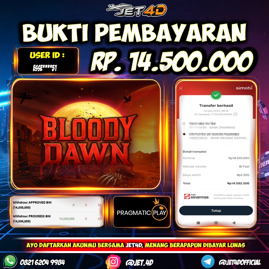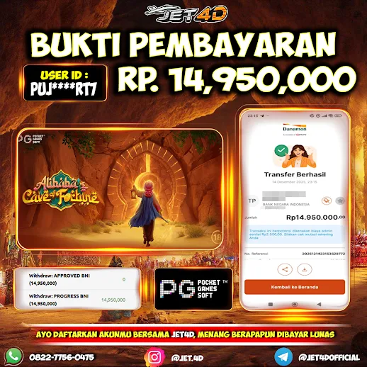 JET4D KEMENANGAN MEGA INSTAN Selamat Kepada Member Setia Atas Withdraw Rp 14.500.000 Hari ini. List member yang sebelumnya mendapatkan withdraw besar bisa cek Disini dan di LINK ini.pelanyanan nonstop dan
