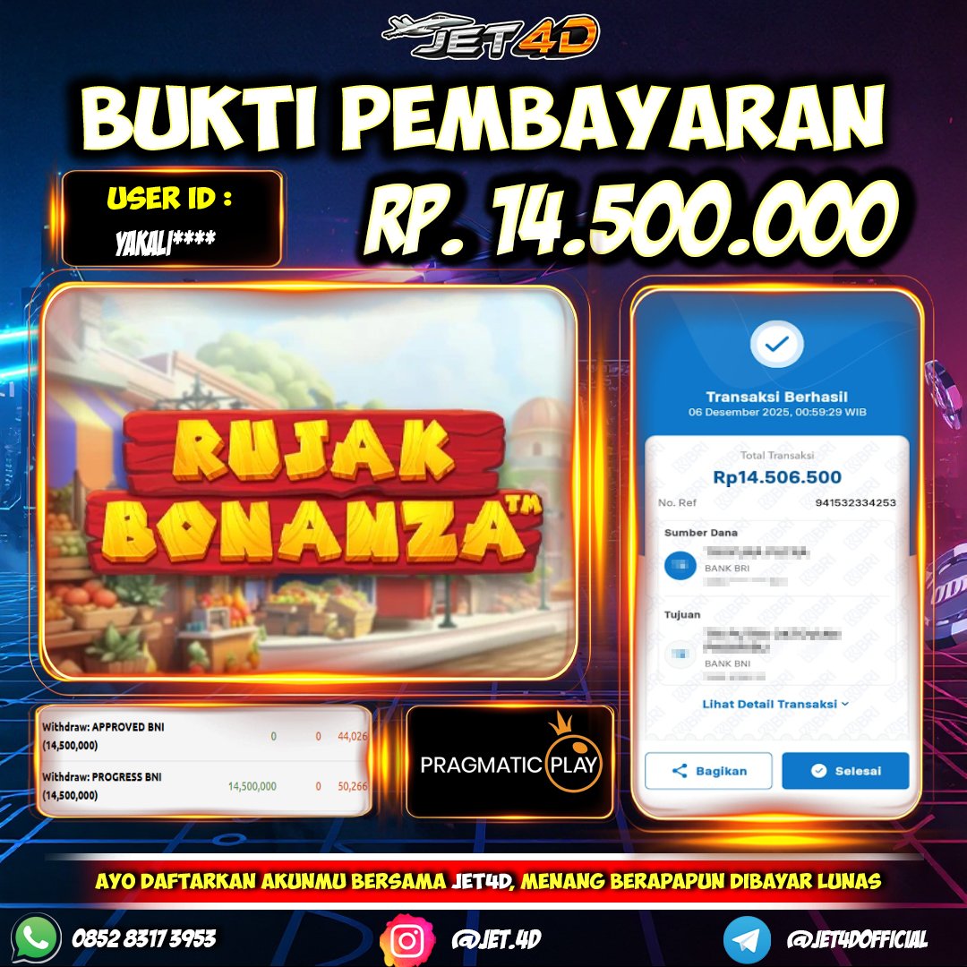 JET4D SEKALI SPIN AUTO JACKPOT Selamat Kepada Member Setia Atas Withdraw Rp 14.500.000 Hari ini. List member yang sebelumnya mendapatkan withdraw besar bisa cek Disini dan di LINK ini.pelanyanan nonstop