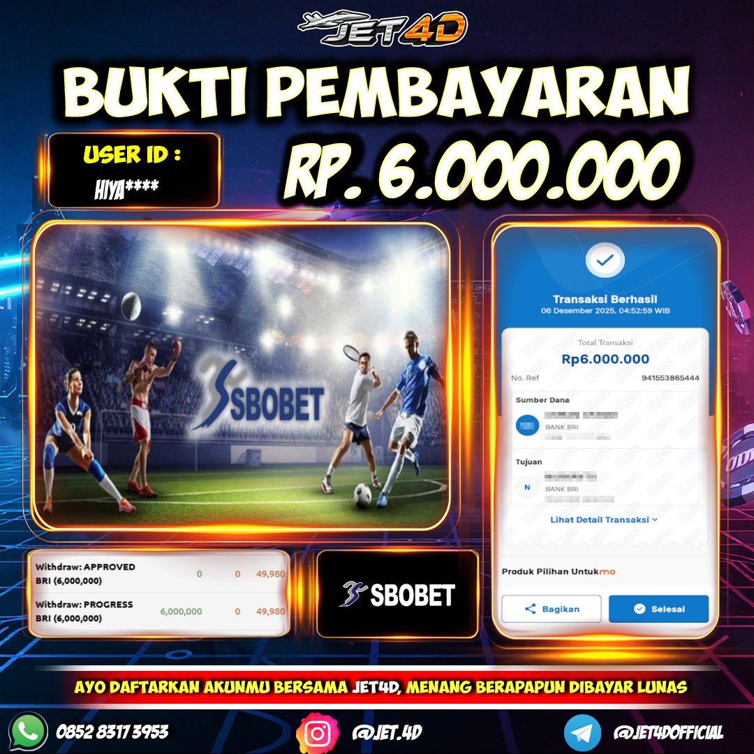 JET4D PREDIKSI PARLAY TERJITU🔥Raih Kemenangan Berlipat Ganda Hanya Dengan 1 Tiket Parlay. Main Lebih Seru, Untung Lebih Besar! Selamat Kepada Member Setia Atas Withdraw Rp 6.000.000