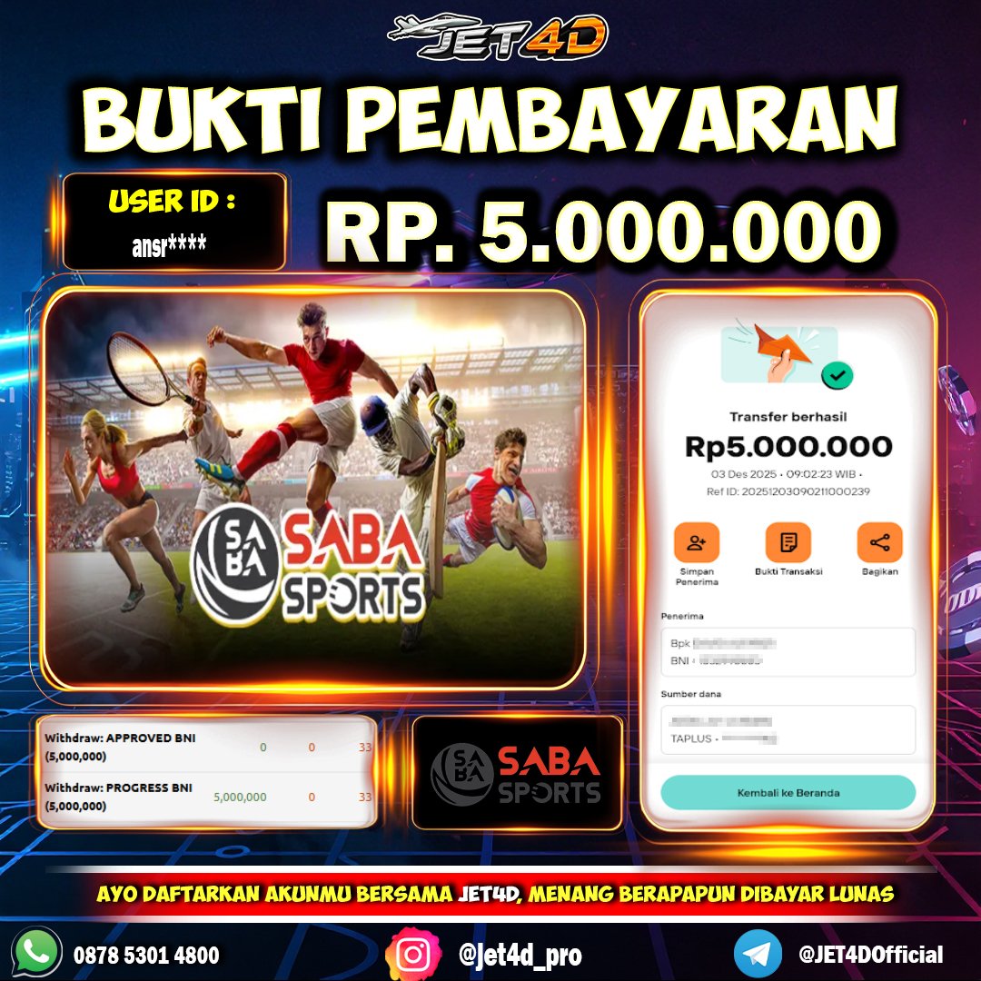 JET4D BANDAR PARLAY #1🔥Raih Kemenangan Berlipat Ganda Hanya Dengan 1 Tiket Parlay. Main Lebih Seru, Untung Lebih Besar! Selamat Kepada Member Setia Atas Withdraw Rp 5.000.000