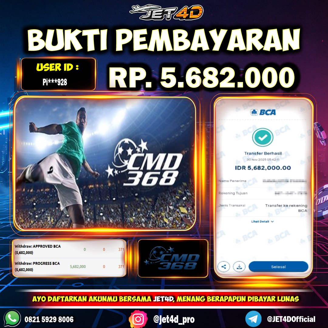 JET4D MODAL TIPIS MENANG SADIS Selamat Kepada Member Setia Atas Withdraw Rp 10.000.000 Hari ini. List member yang sebelumnya mendapatkan withdraw besar bisa cek Disini dan di LINK ini.pelanyanan nonstop