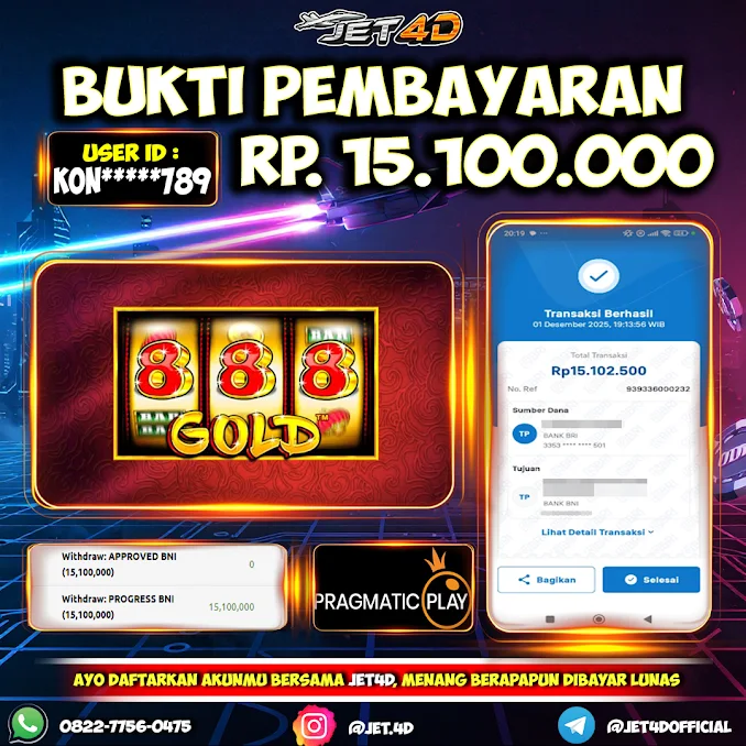 JET4D SLOT 888 Gold Selamat Kepada Member Setia Atas Withdraw Rp 15.100.000Hari ini. List member yang sebelumnya mendapatkan withdraw besar bisa cek Disini dan di LINK ini.pelanyanan nonstop dan profesional