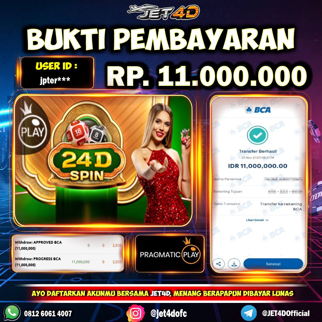 JET4D TARUHAN ANGKA SUPER SERU Selamat Kepada Member Setia Atas Withdraw Rp 11.000.000 Hari ini. List member yang sebelumnya mendapatkan withdraw besar bisa cek Disini dan di LINK ini.pelanyanan nonstop