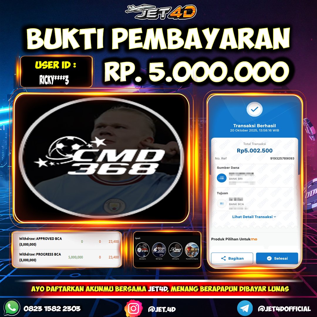 JET4D TARUHKAN TIM KESAYANGANMU DISINI Selamat Kepada Member Setia Atas Withdraw Rp 5.000.000 Hari ini. List member yang sebelumnya mendapatkan withdraw besar bisa cek Disini dan di LINK ini.pelanyanan nonstop