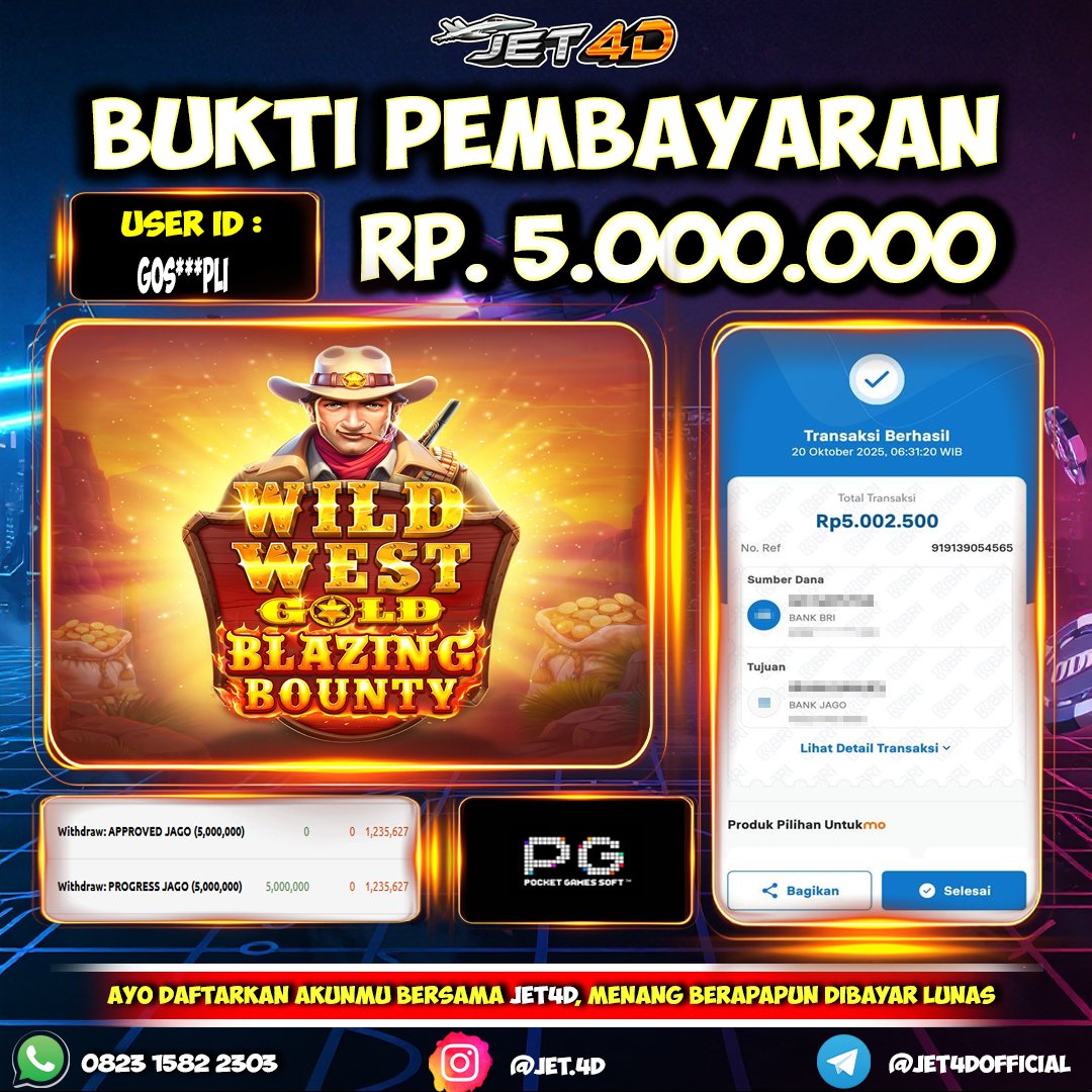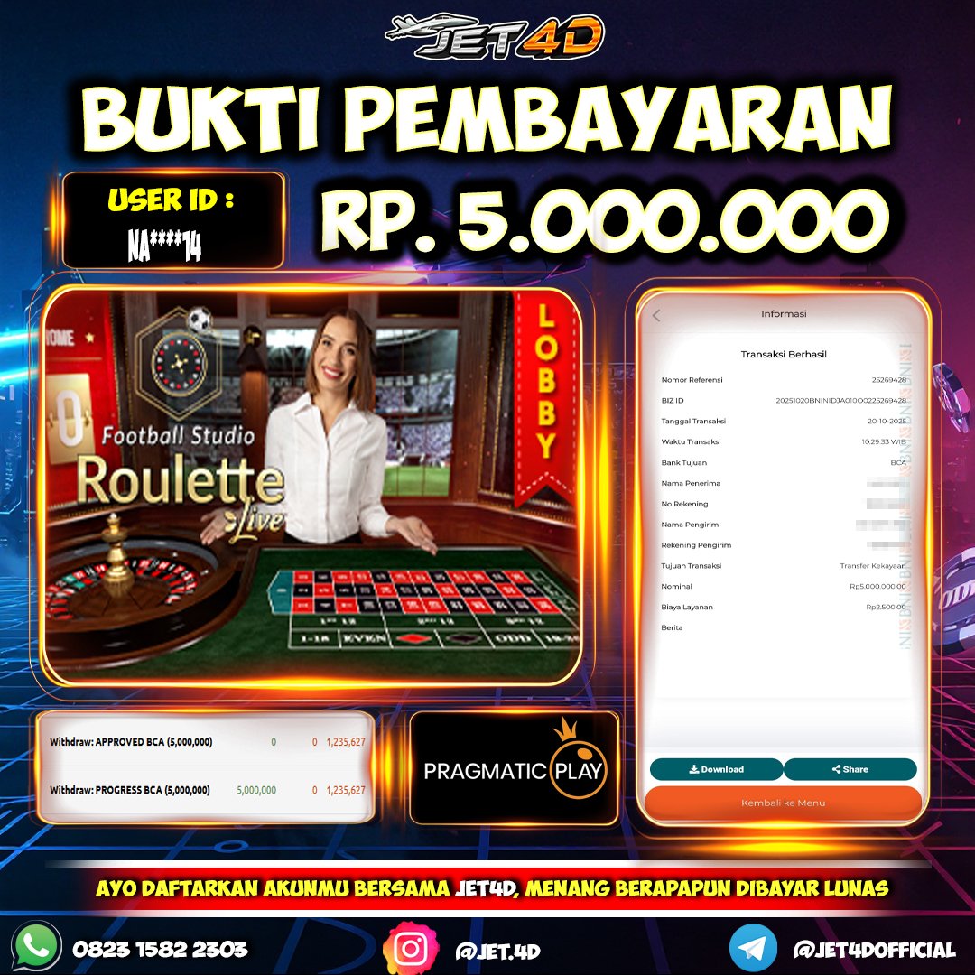 JET4D RASAKAN KEBERUNTUNGAN SEJATI Selamat Kepada Member Setia Atas Withdraw Rp 5.000.000 Hari ini. List member yang sebelumnya mendapatkan withdraw besar bisa cek Disini dan di LINK ini.pelanyanan nonstop dan
