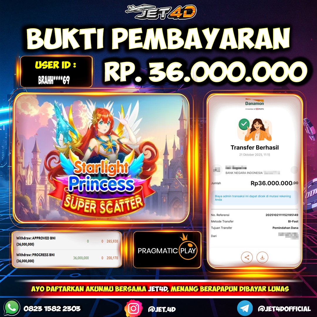 JET4D Starlight Princess Super Scatter Selamat Kepada Member Setia Atas Withdraw Rp 7.000.000 Hari ini. List member yang sebelumnya mendapatkan withdraw besar bisa cek Disini dan di LINK ini.pelanyanan nonstop dan profesional hanya