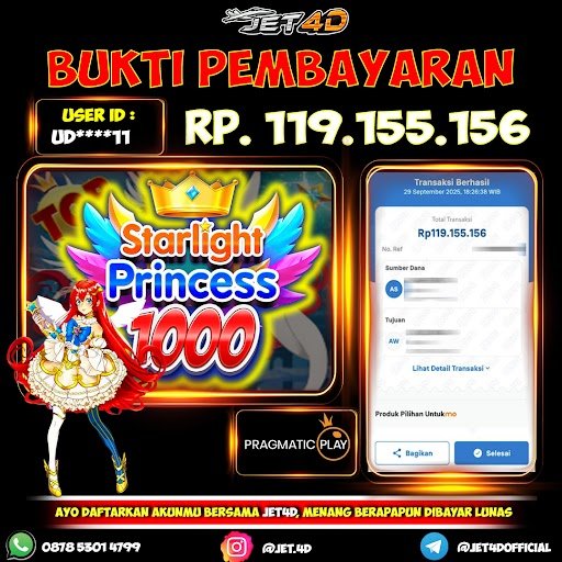 JET4D KEMENANGAN Starlight Princess 1000 Selamat Kepada Member Setia Atas Withdraw Rp 119.155.0156 Hari ini. List member yang sebelumnya mendapatkan withdraw besar bisa cek Disini dan di LINK ini.pelanyanan nonstop