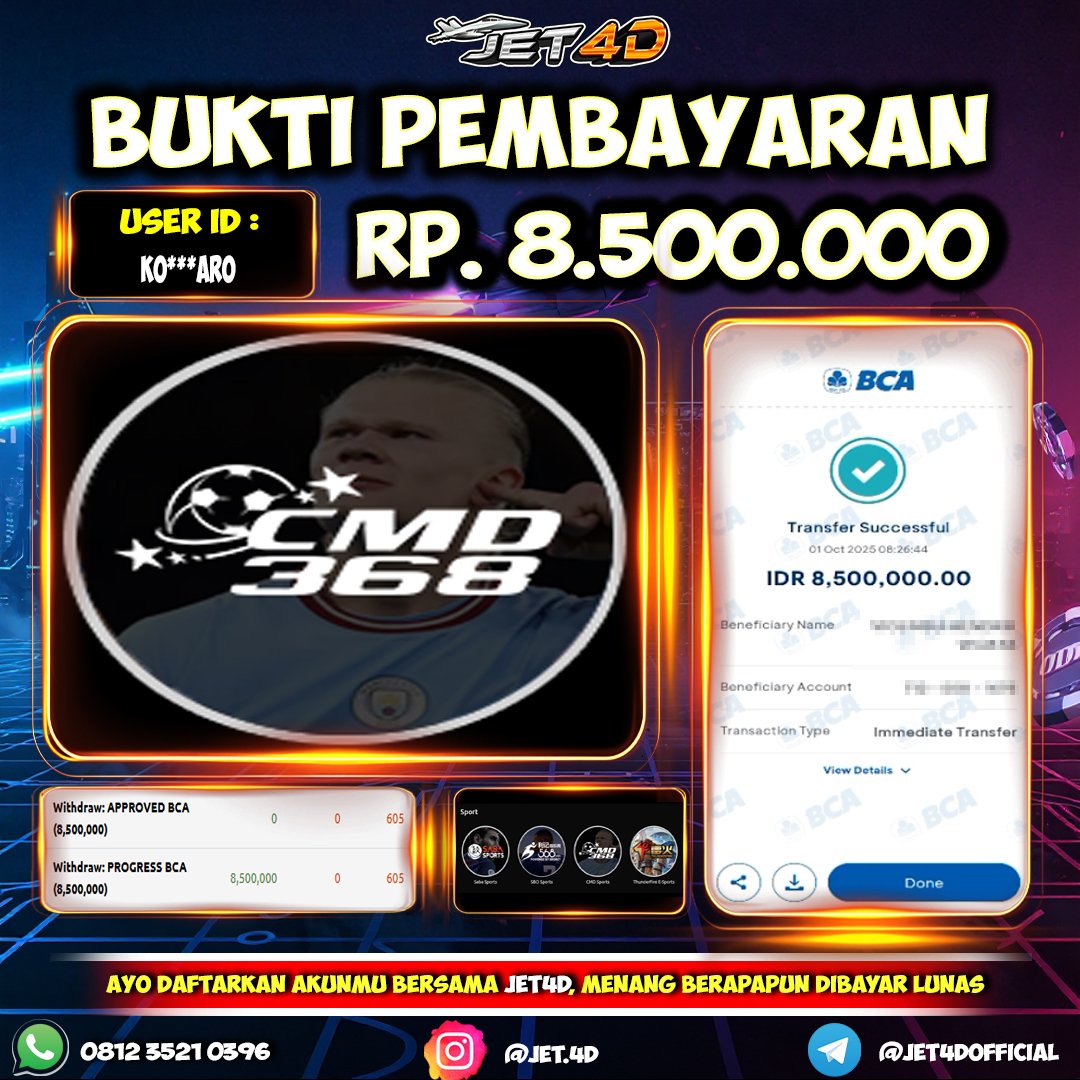 JET4D EVENT BOLA EKSKLUSIF Selamat Kepada Member Setia Atas Withdraw Rp 8.500.000 Hari ini. List member yang sebelumnya mendapatkan withdraw besar bisa cek Disini dan di LINK ini.pelanyanan nonstop dan