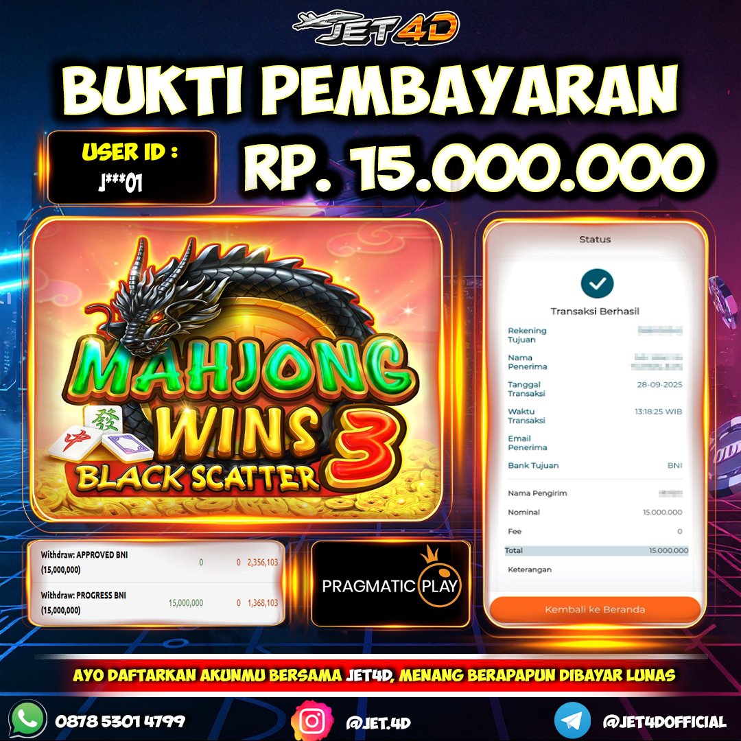 JET4D NO MAHJONG NO PARTY Selamat Kepada Member Setia Atas Withdraw Rp 7.261.000 Hari ini. List member yang sebelumnya mendapatkan withdraw besar bisa cek Disini dan di LINK ini.pelanyanan nonstop