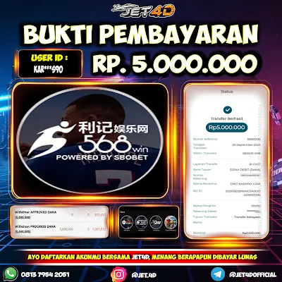 JET4D PEMBAYARAN MENANG HARI INI Selamat Kepada Member Setia Atas Withdraw Rp 21.000.000 Hari ini. List member yang sebelumnya mendapatkan withdraw besar bisa cek Disini dan di LINK ini.pelanyanan nonstop