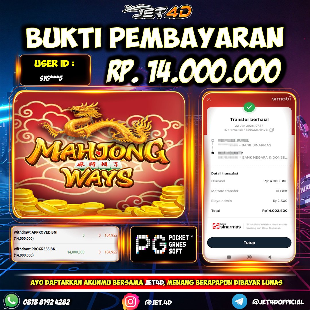 JET4D MAHJONG FORTUNE 2 Selamat Kepada Member Setia Atas Withdraw Rp. 11.500.000 Hari ini List member yang sebelumnya mendapatkan withdraw besar bisa cek Disini dan di LINK ini.pelanyanan nonstop dan profesional