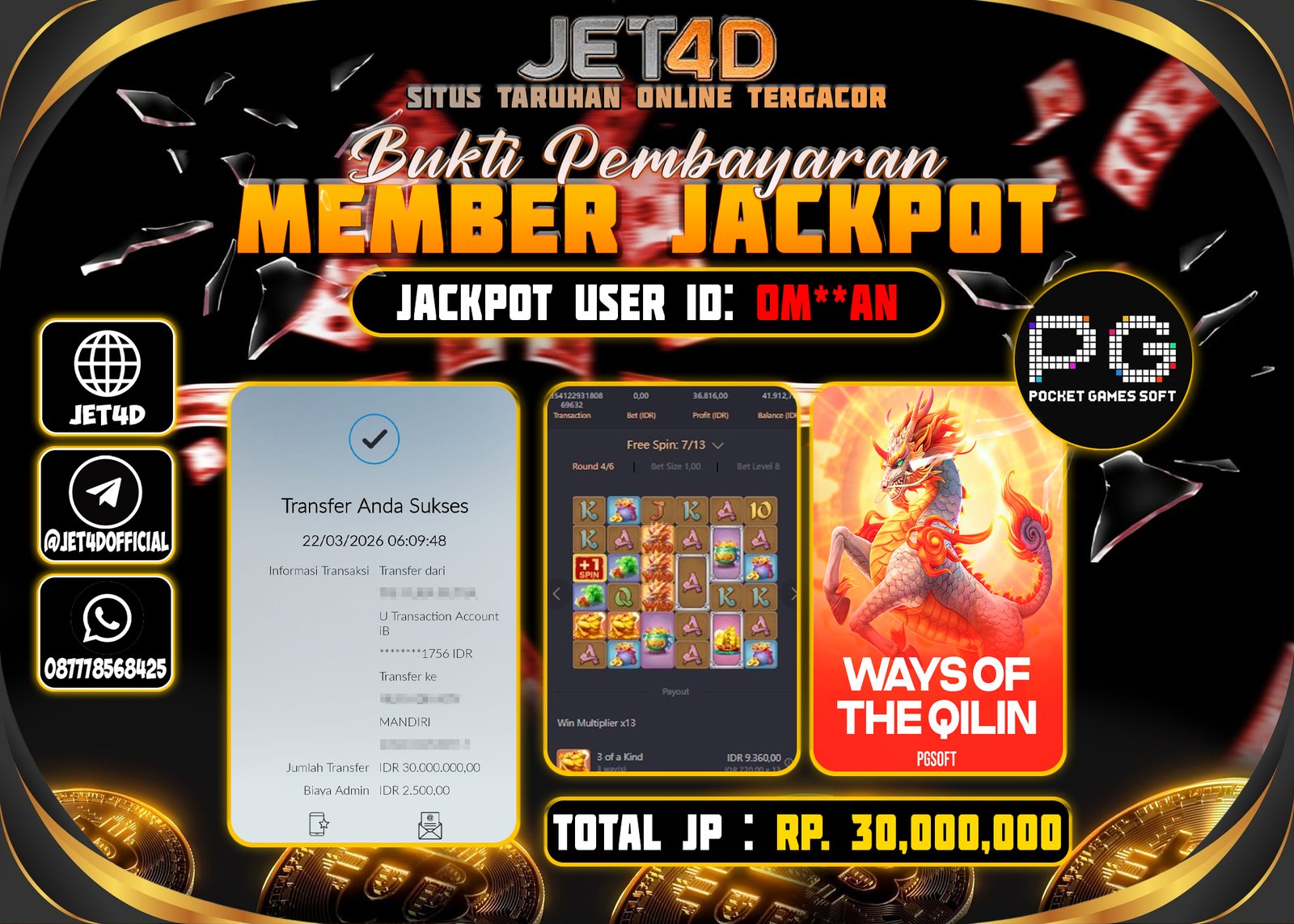 JET4D WILD BOUNTY SHOWDOWN Selamat Kepada Member Setia Atas Withdraw Rp. 30.000.000 Hari ini List member yang sebelumnya mendapatkan withdraw besar bisa cek Disini dan di LINK ini.pelanyanan nonstop dan profesional