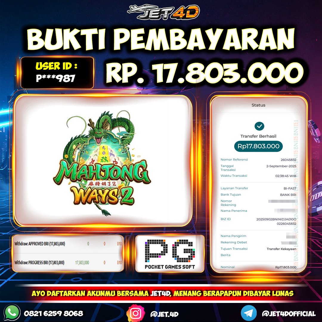 JET4D MAHJONG TERGACOR #1 Selamat Kepada Member Setia Atas Withdraw Rp 16.005.000 Hari ini. List member yang sebelumnya mendapatkan withdraw besar bisa cek Disini dan di LINK ini.pelanyanan nonstop dan