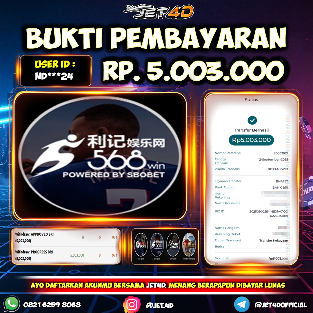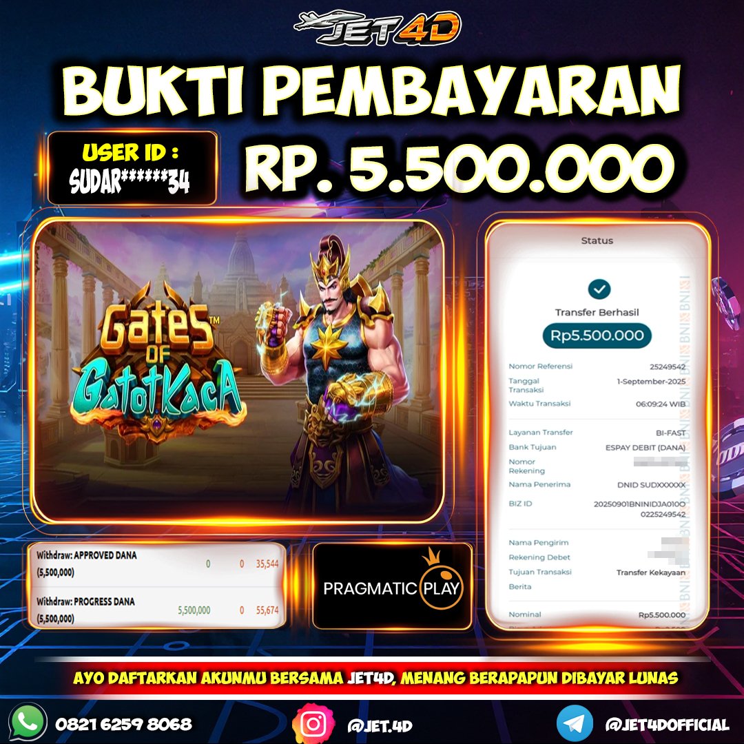 JET4D JOIN PASTI WIN Selamat Kepada Member Setia Atas Withdraw Rp 5.500.000 Hari ini. List member yang sebelumnya mendapatkan withdraw besar bisa cek Disini dan di LINK ini.pelanyanan nonstop dan