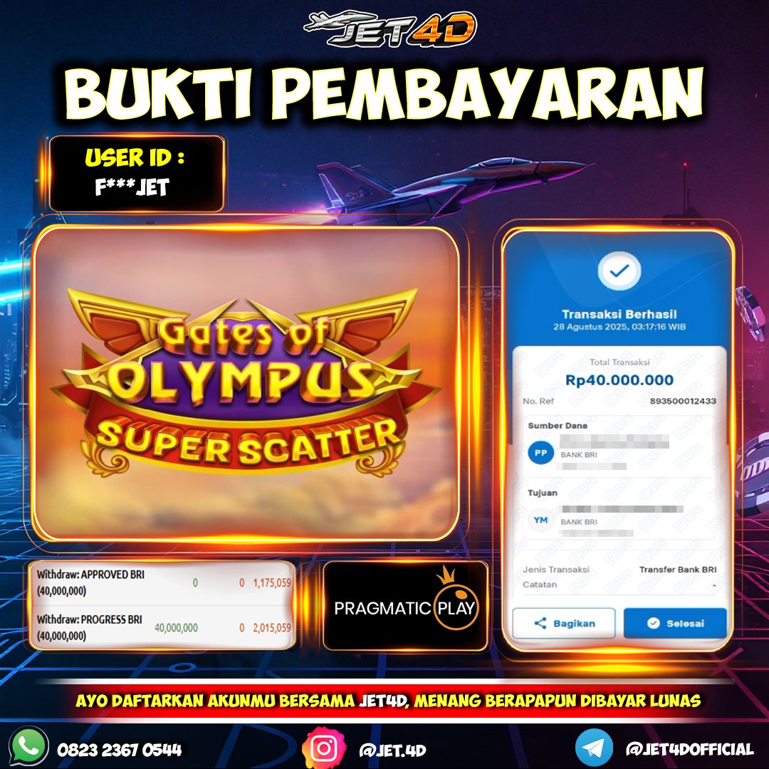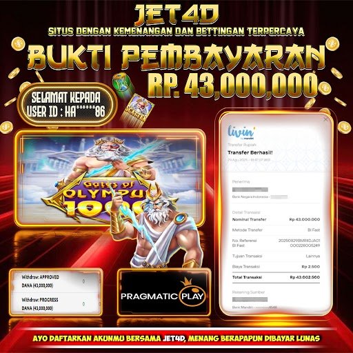 JET4D BERMAIN DENGAN POLA TERBARU PASTI JACKPOT Selamat Kepada Member Setia Atas Withdraw Rp 43.000.000 Hari ini. List member yang sebelumnya mendapatkan withdraw besar bisa cek Disini dan