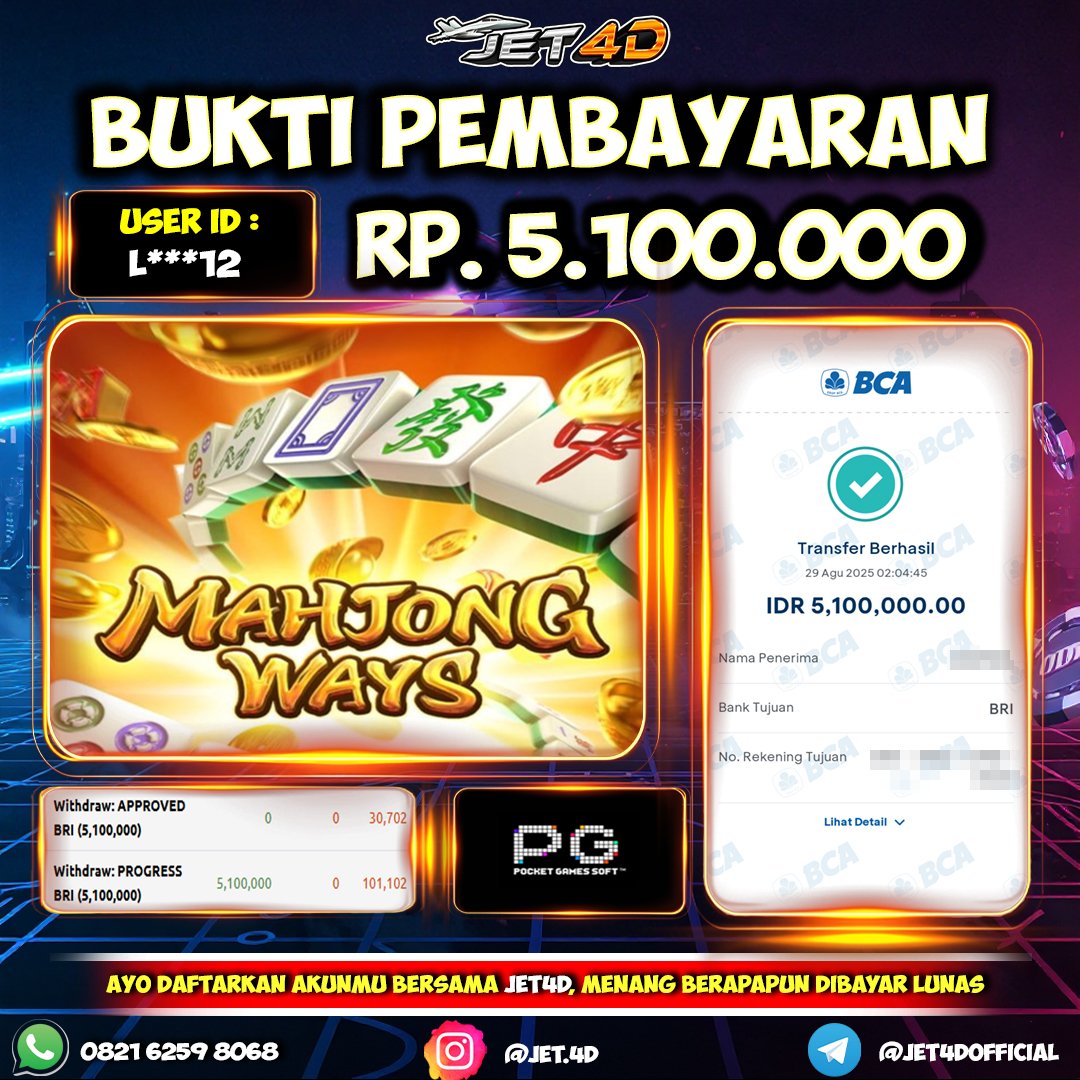 JET4D MAHJONG BANJIR SCATTER Selamat Kepada Member Setia Atas Withdraw Rp 5.100.000 Hari ini. List member yang sebelumnya mendapatkan withdraw besar bisa cek Disini dan di LINK ini.pelanyanan nonstop dan