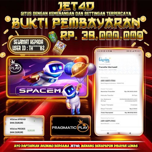 JET4D JET4D LIVE CASINO SPACEMAN TERBESAR 2025 Selamat Kepada Member Setia Atas Withdraw Rp 38.000.000 Hari ini. Kami lampirkan bukti transaksi yang ASLI & VALID, meskipun