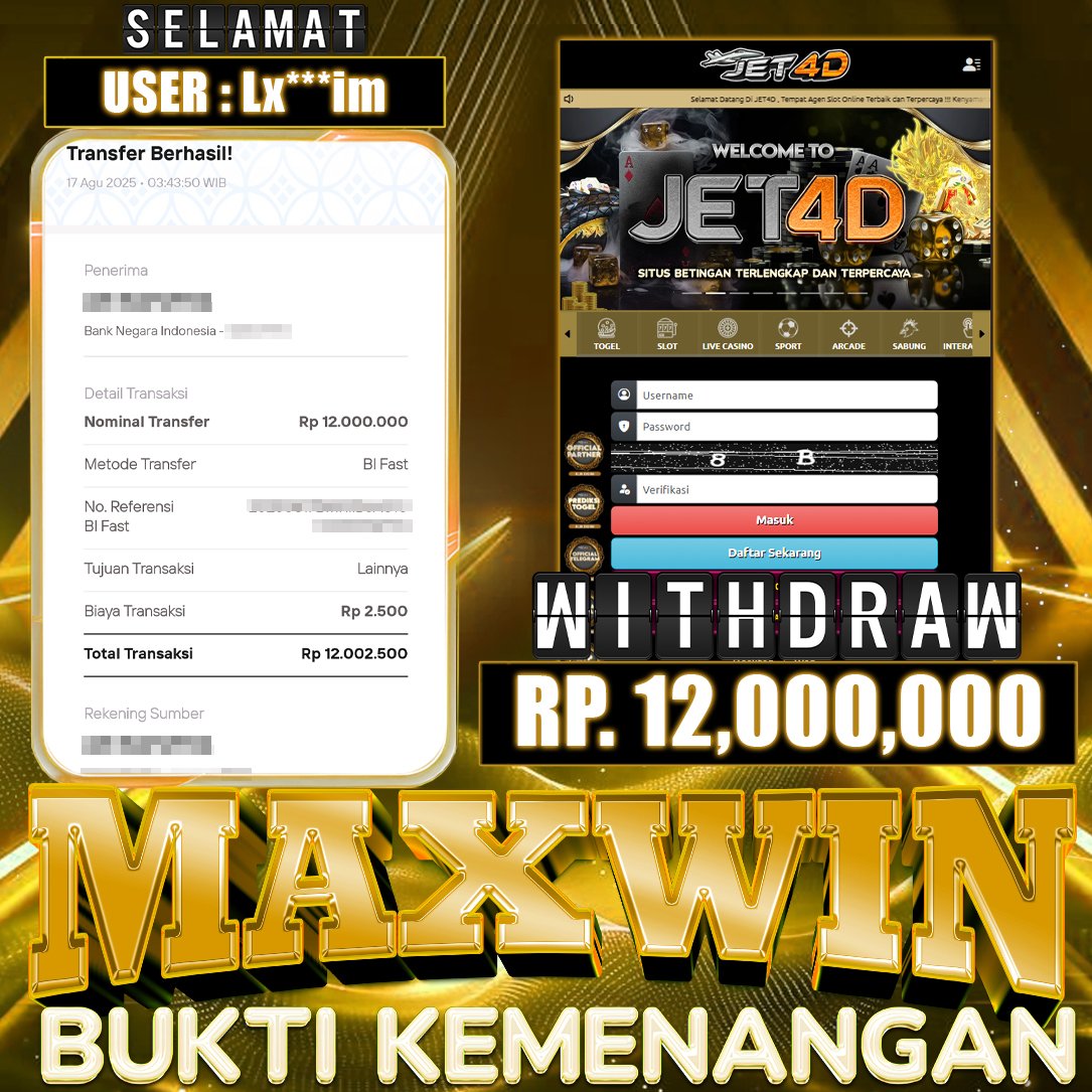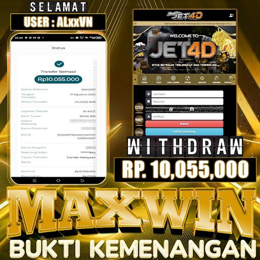 JET4D DAFTAR DAN DAPATKAN FREEBET 17K Selamat Kepada Member Setia Atas Withdraw Rp 12.000.000 Hari ini. List member yang sebelumnya mendapatkan withdraw besar bisa cek Disini dan di LINK ini.pelanyanan