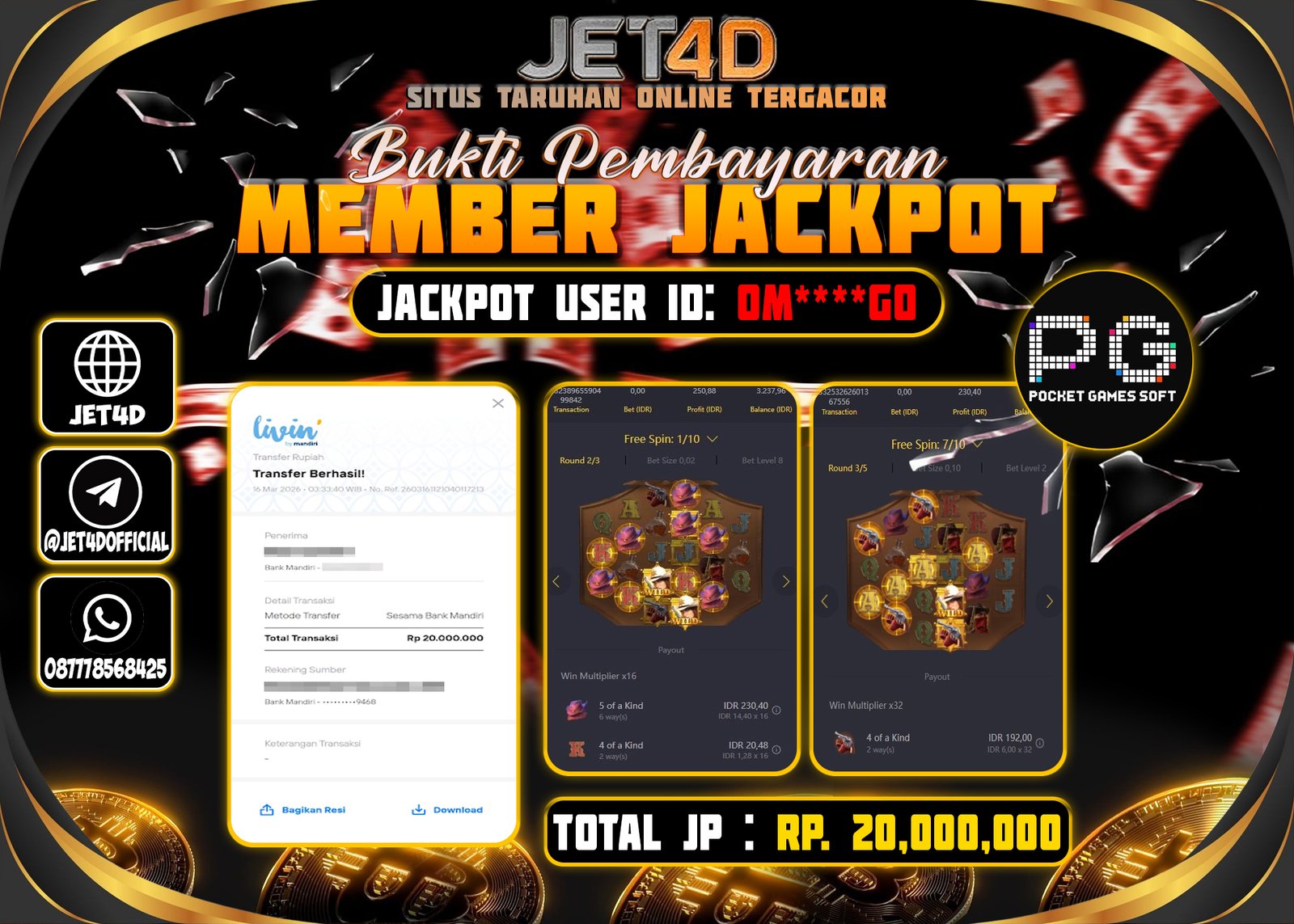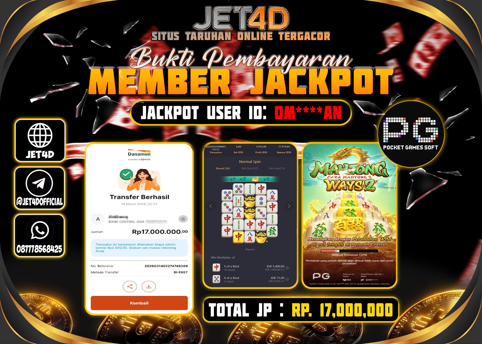 JET4D MR. TREASSURE’S FORTUNE Selamat Kepada Member Setia Atas Withdraw Rp. 20.000.000 Hari ini List member yang sebelumnya mendapatkan withdraw besar bisa cek Disini dan di LINK ini.pelanyanan nonstop dan profesional