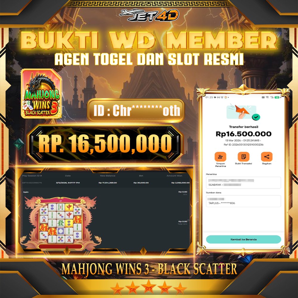 JET4D TEMPAT CARI CUAN MAKSIMAL Selamat Kepada Member Setia Atas Withdraw Rp. 5.199.580 Hari ini List member yang sebelumnya mendapatkan withdraw besar bisa cek Disini dan di LINK ini.pelanyanan nonstop dan