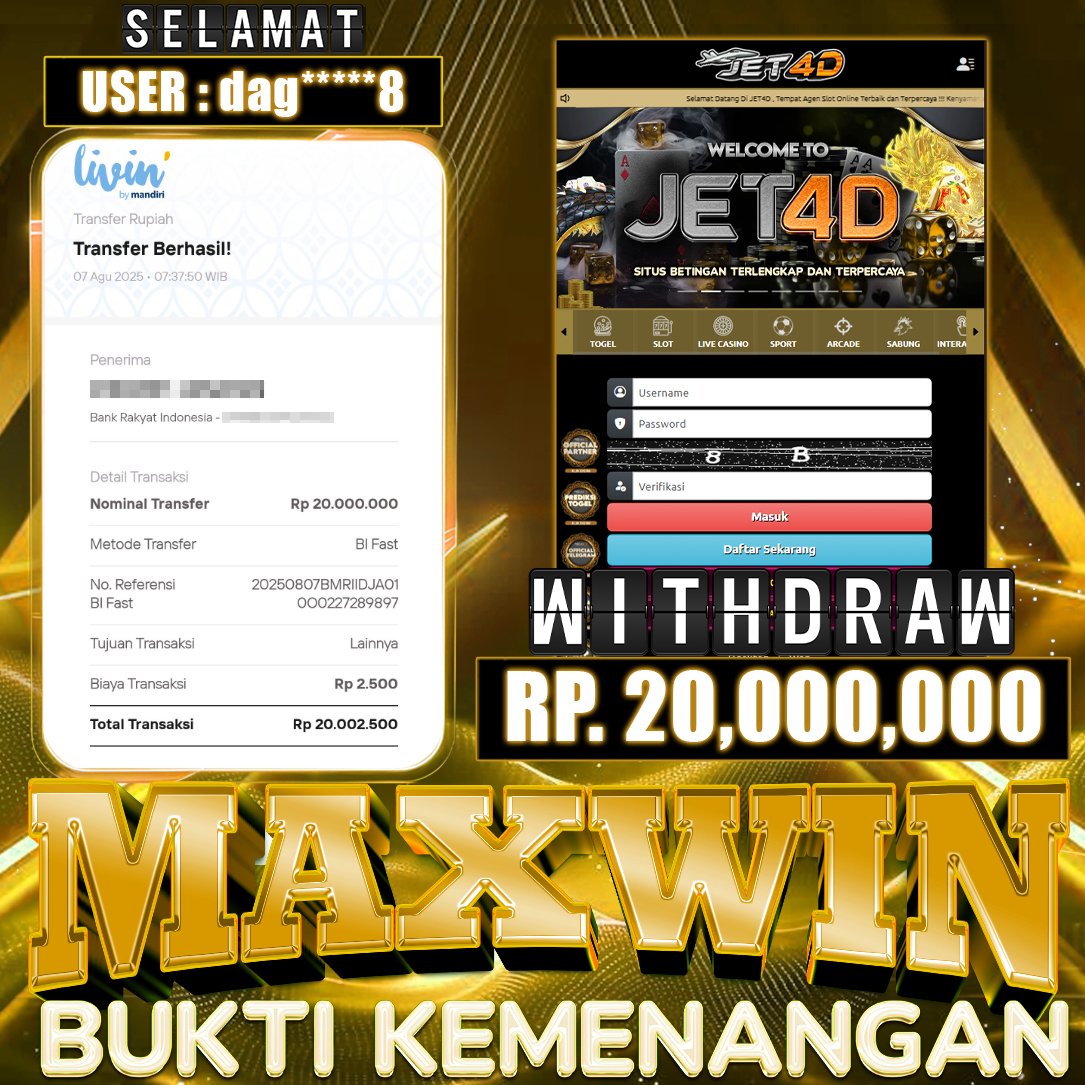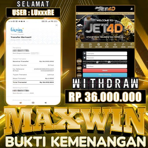 JET4D EVENT MAX PARLAY Selamat Kepada Member Setia Atas Withdraw Rp 40.000.000 Hari ini. List member yang sebelumnya mendapatkan withdraw besar bisa cek Disini dan di LINK ini.pelanyanan nonstop dan profesional