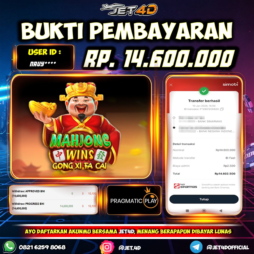 JET4D SITUS TERBAIK 2026 Selamat Kepada Member Setia Atas Withdraw Rp 14.950.000 Hari ini. List member yang sebelumnya mendapatkan withdraw besar bisa cek Disini dan di LINK ini.pelanyanan nonstop dan
