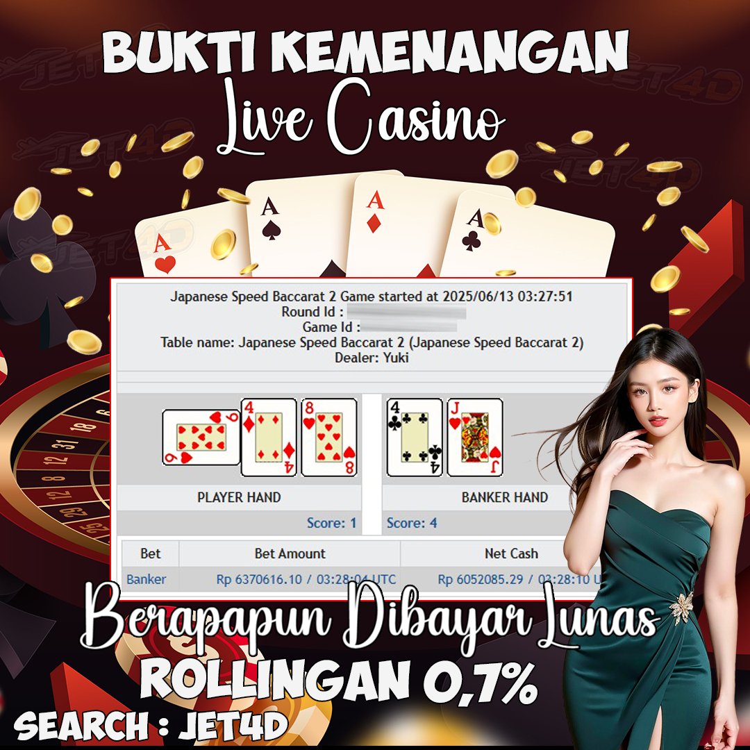 JET4D LIVE CASINO TERGACOR #1 SEASIA Selamat Kepada Member Setia Atas Withdraw Rp 35.000.000 Hari ini. List member yang sebelumnya mendapatkan withdraw besar bisa cek Disini dan di LINK ini.pelanyanan nonstop