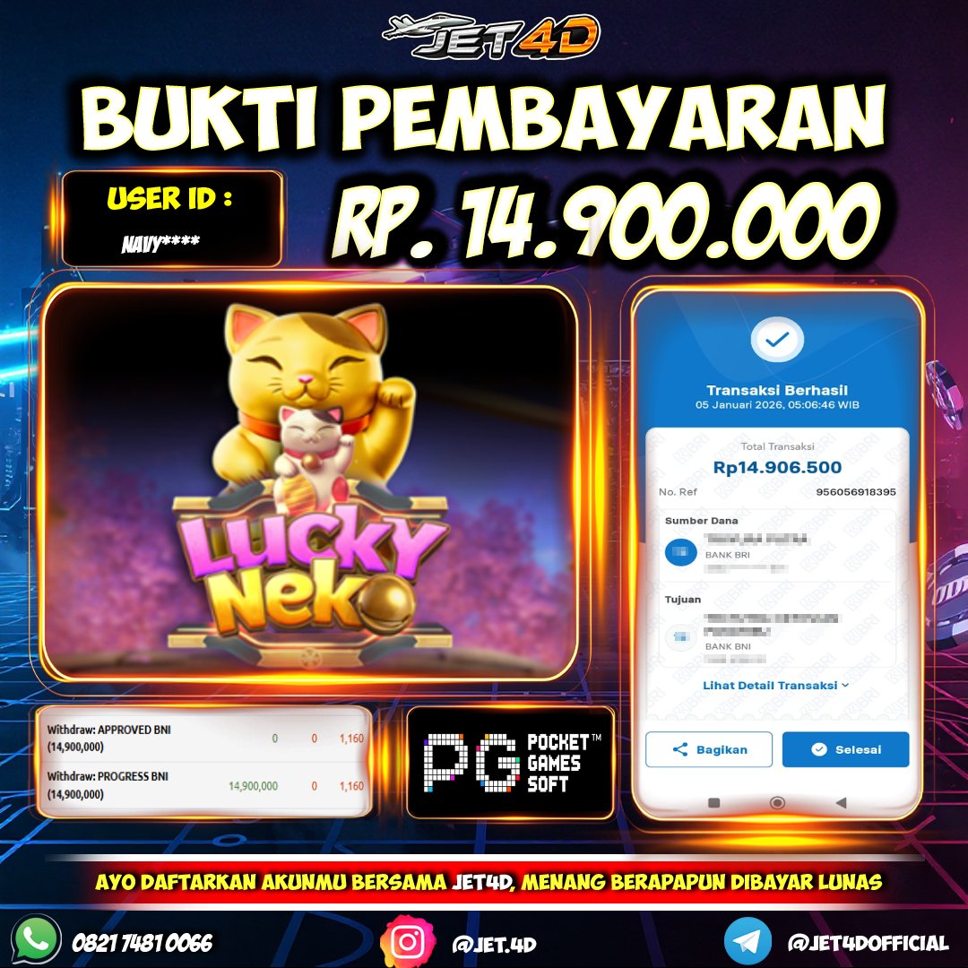 JET4D SENSASIONAL TANPA BATAS Selamat Kepada Member Setia Atas Withdraw Rp 14.900.000 Hari ini. List member yang sebelumnya mendapatkan withdraw besar bisa cek Disini dan di LINK ini.pelanyanan nonstop dan