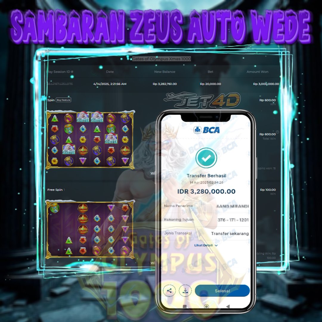 SAMBARAN ZEUS AUTO WEDE Selamat Kepada Member Setia Atas Withdraw Rp 3.280.000 Hari ini. List member yang sebelumnya mendapatkan withdraw besar bisa cek Disini dan di LINK ini.pelanyanan nonstop dan profesional